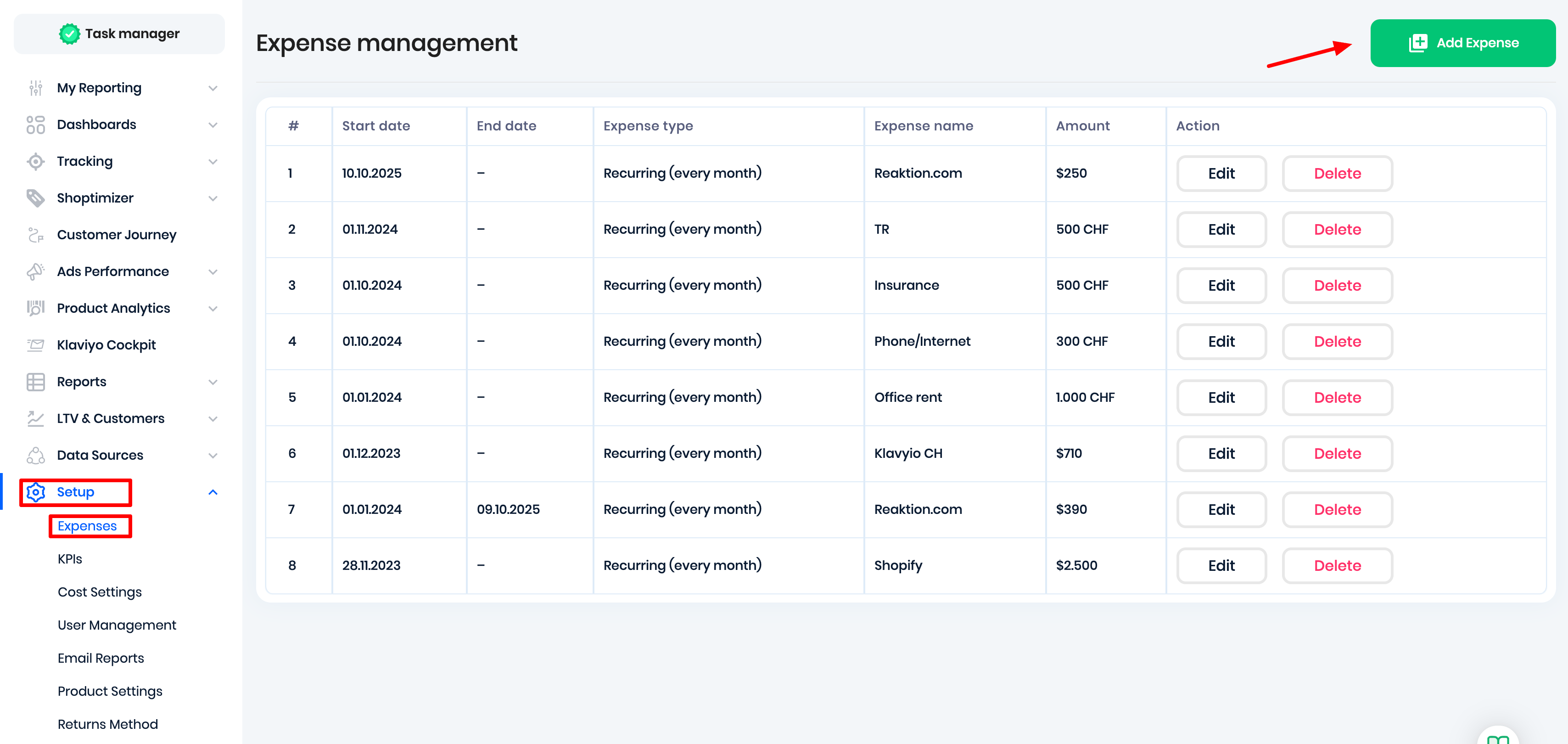 You can create both recurring expenses and one-time expenses in Reaktion to your entire profit & loss overview.