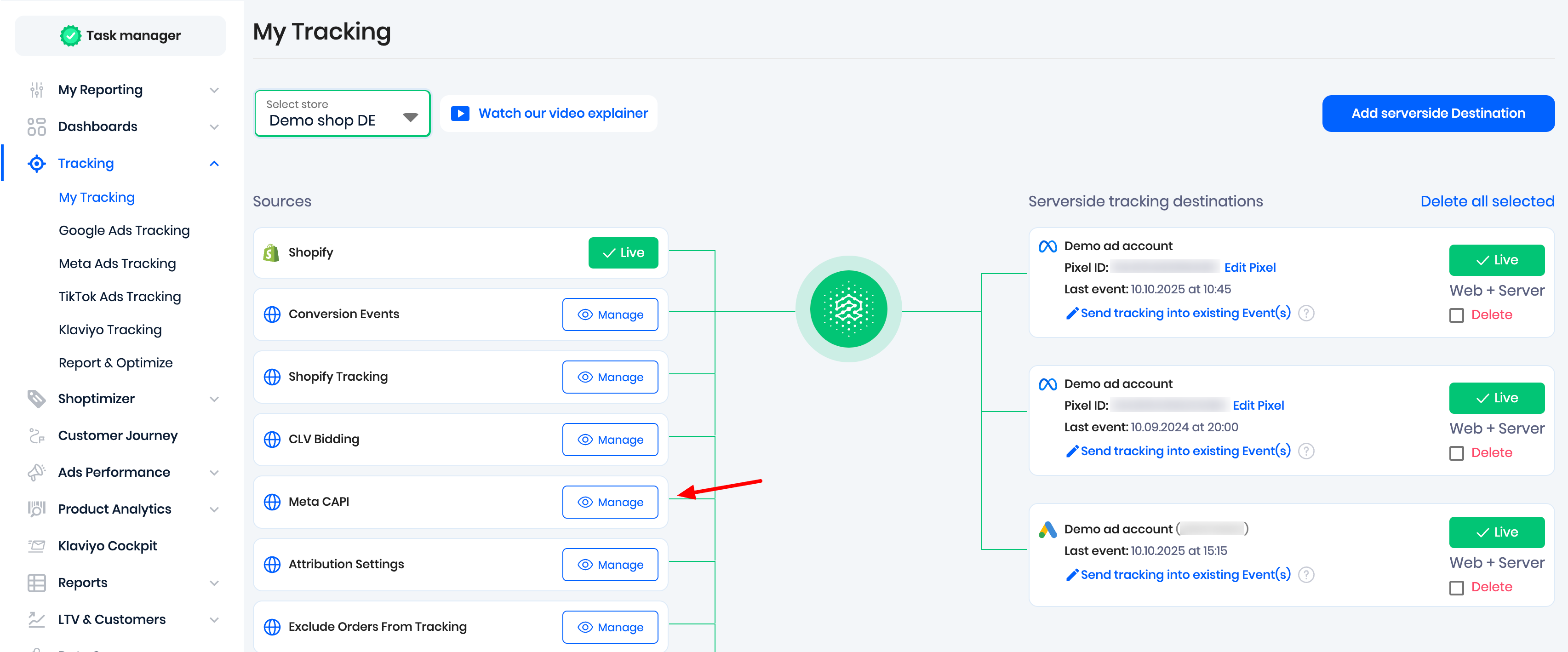 2. If you are not redirected automatically, please navigate to Events Manager, go to Data Sources and select the active pixel.