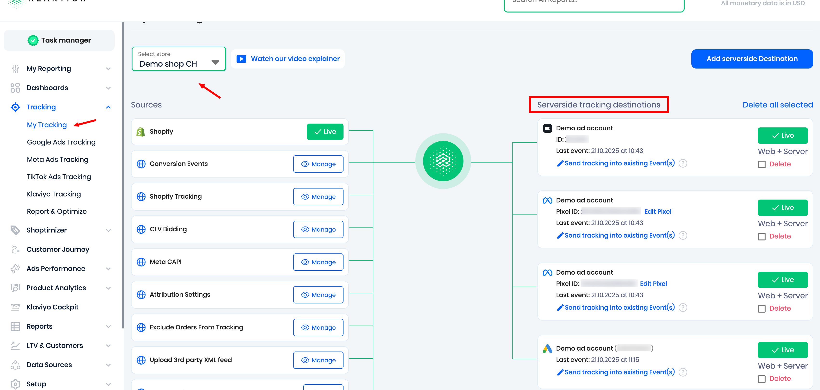 - To do so, log in to your Reaktion account, click on Tracking > Google / Meta Ads Tracking > Click on Pixel Mapping: