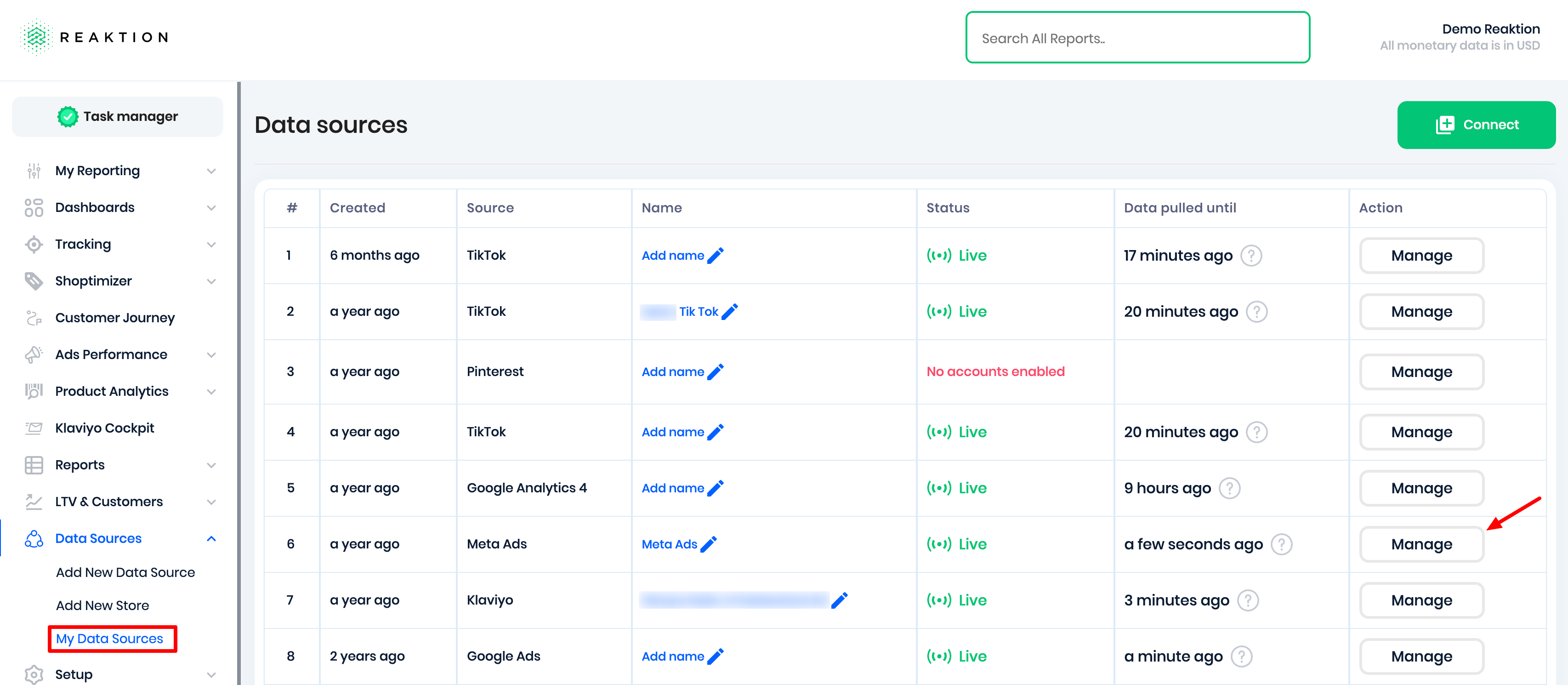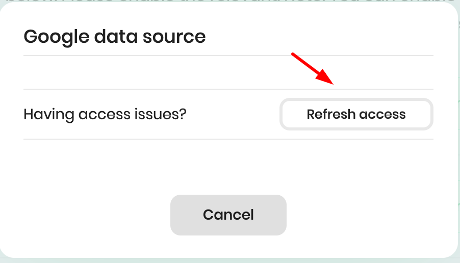 To fix this issue, simply navigate to the left panel > Data Sources > My Data Sources. From there, simply click on the "Manage" button of the data source you wish to refresh access on > click Settings > click Refresh Access