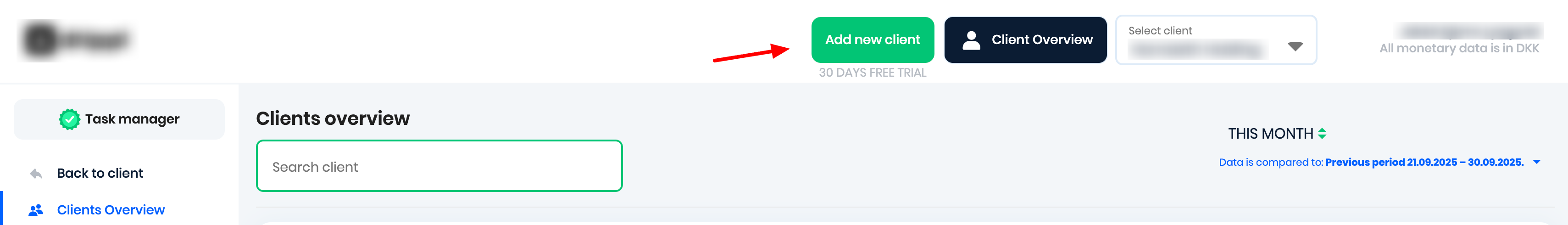 Existing agency user? Please create a new client account by clicking on Client Overview > Add new client: