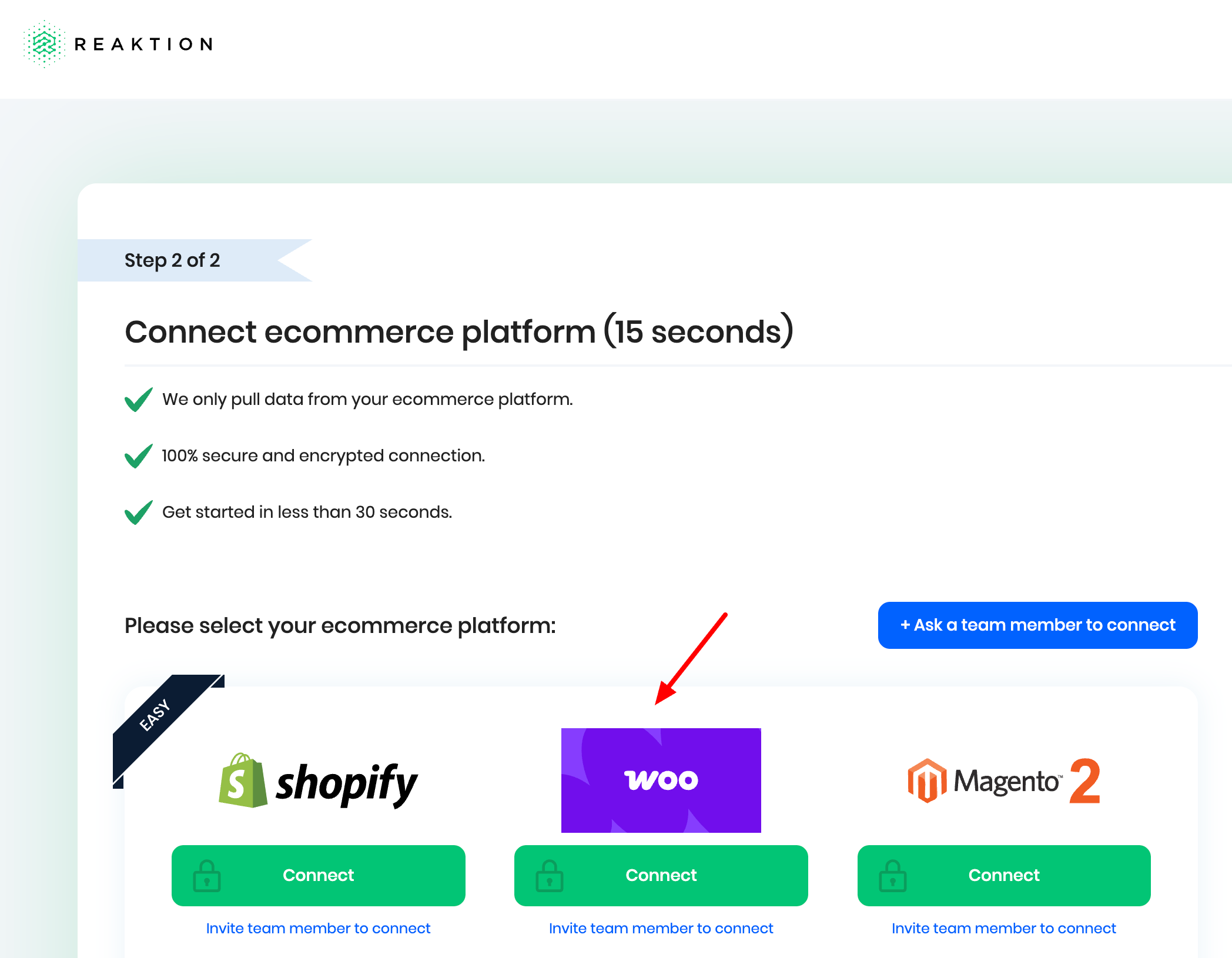 It's very easy to connect your WooCommerce store to Reaktion.