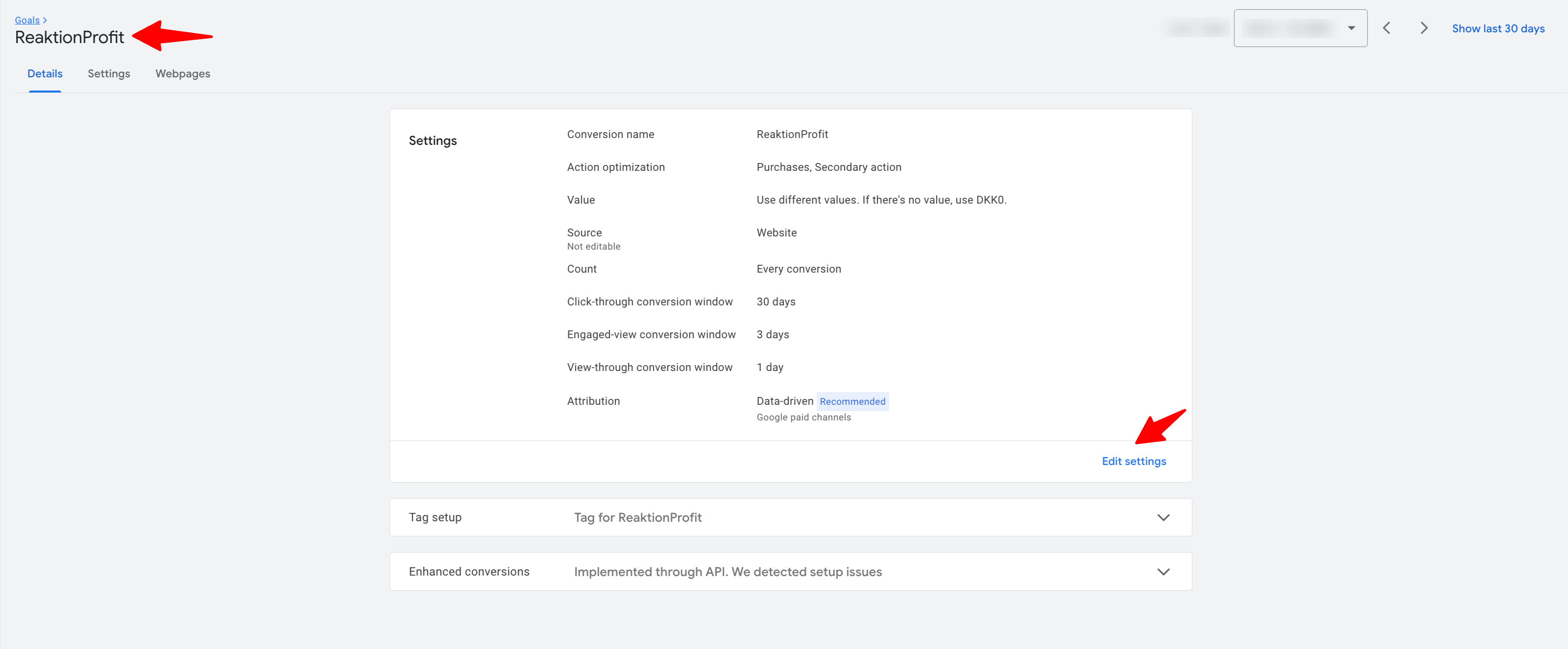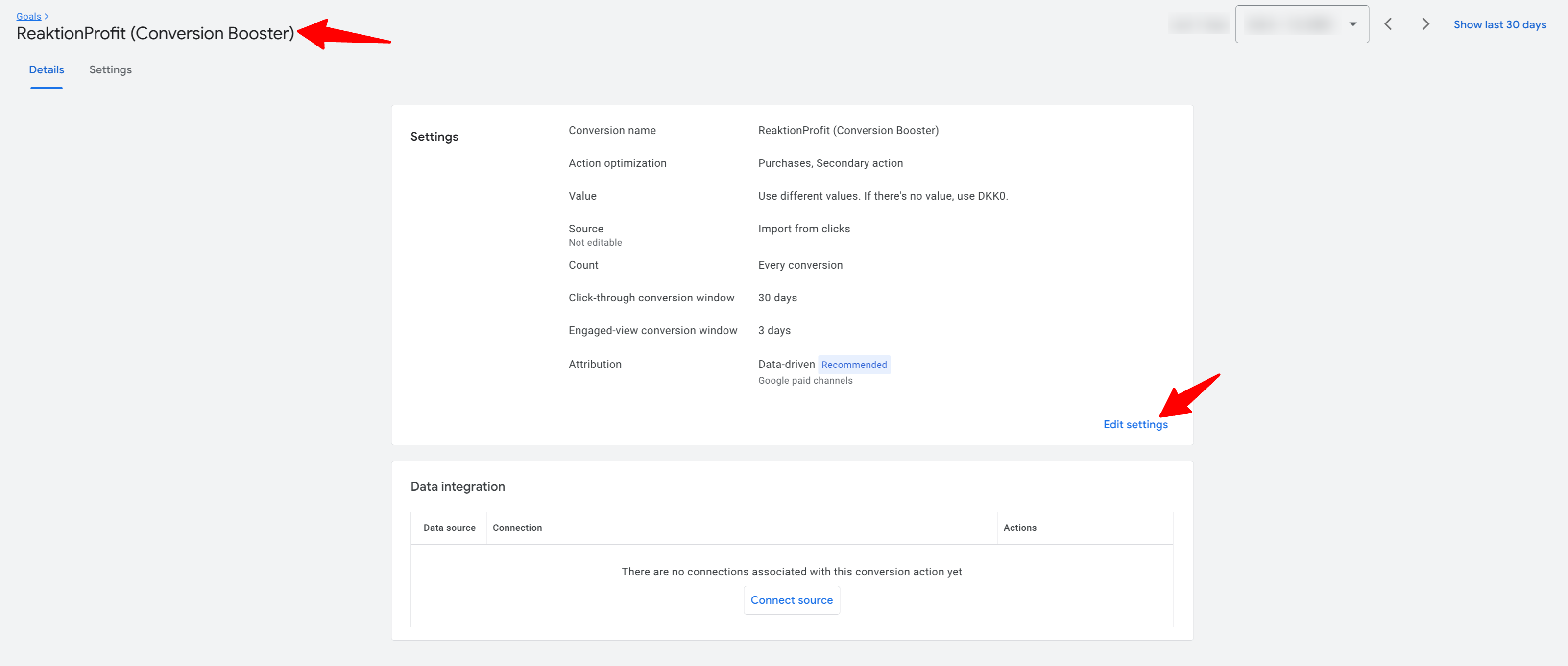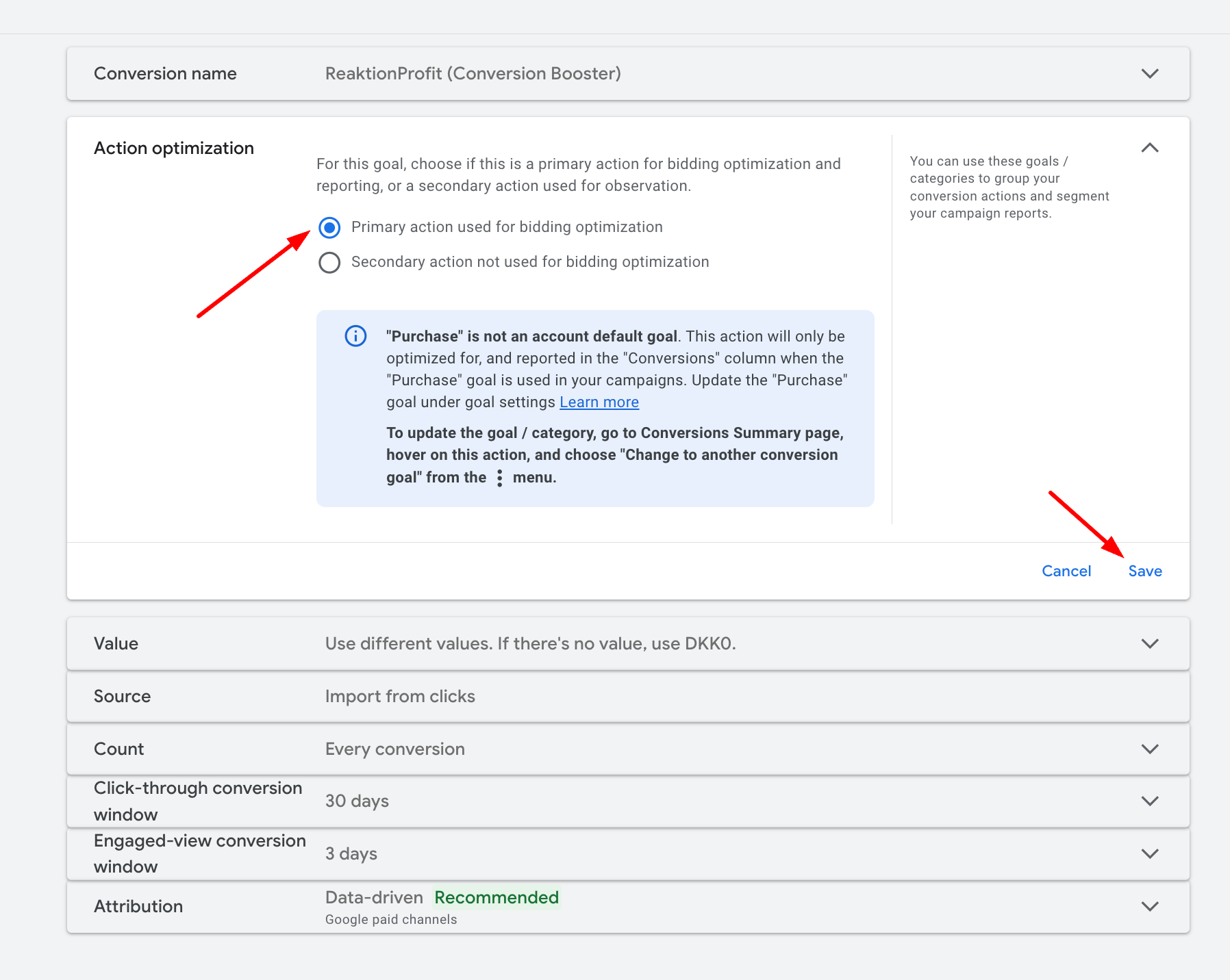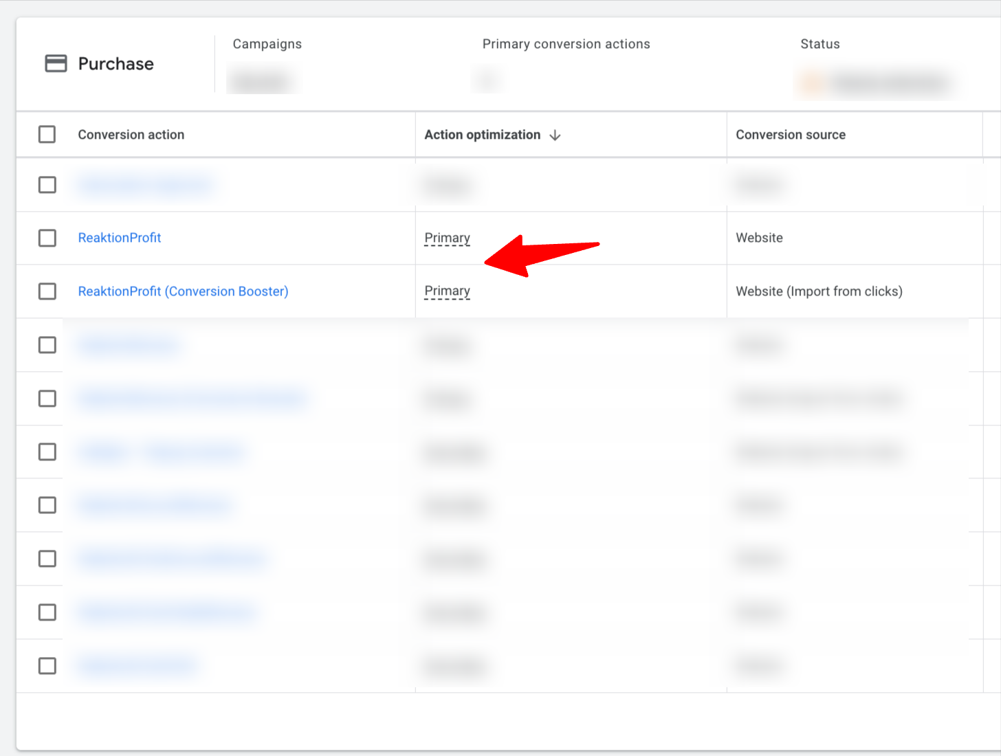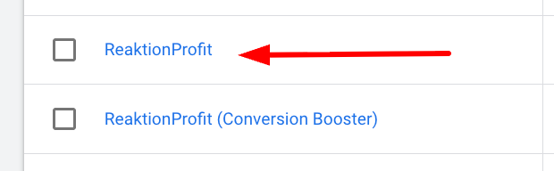 Repeat the procedure listed above, but now with the conversion action named "ReaktionProfit (Conversion Booster)"