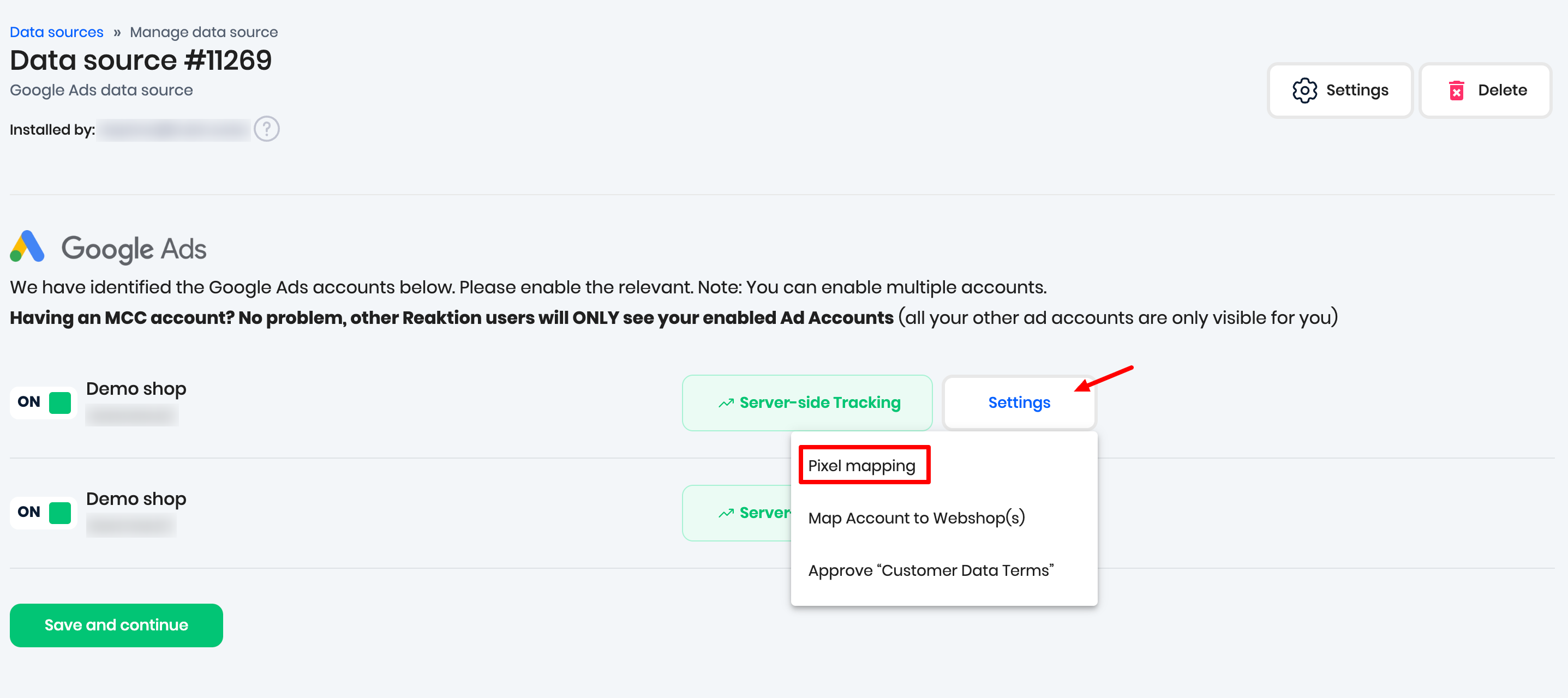 Step 7: If you have connected multiple stores or markets, it's necessary to also Map Ad Accounts to web shops to ensure correct tracking and shop-level reporting.
