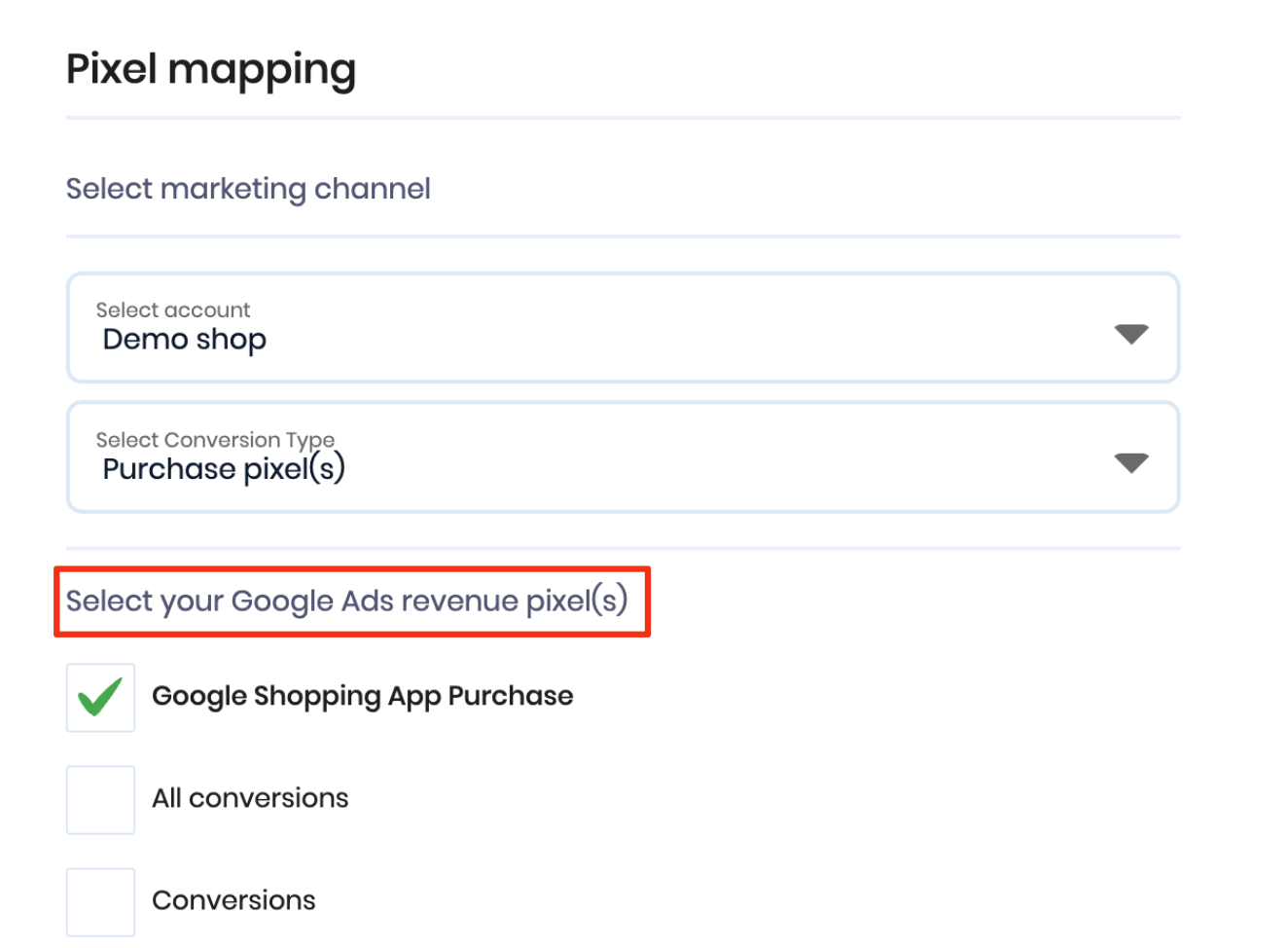 Step 6: It's important to also select your the specific Google Ads Purchase event you're currently using for tracking and optimization: