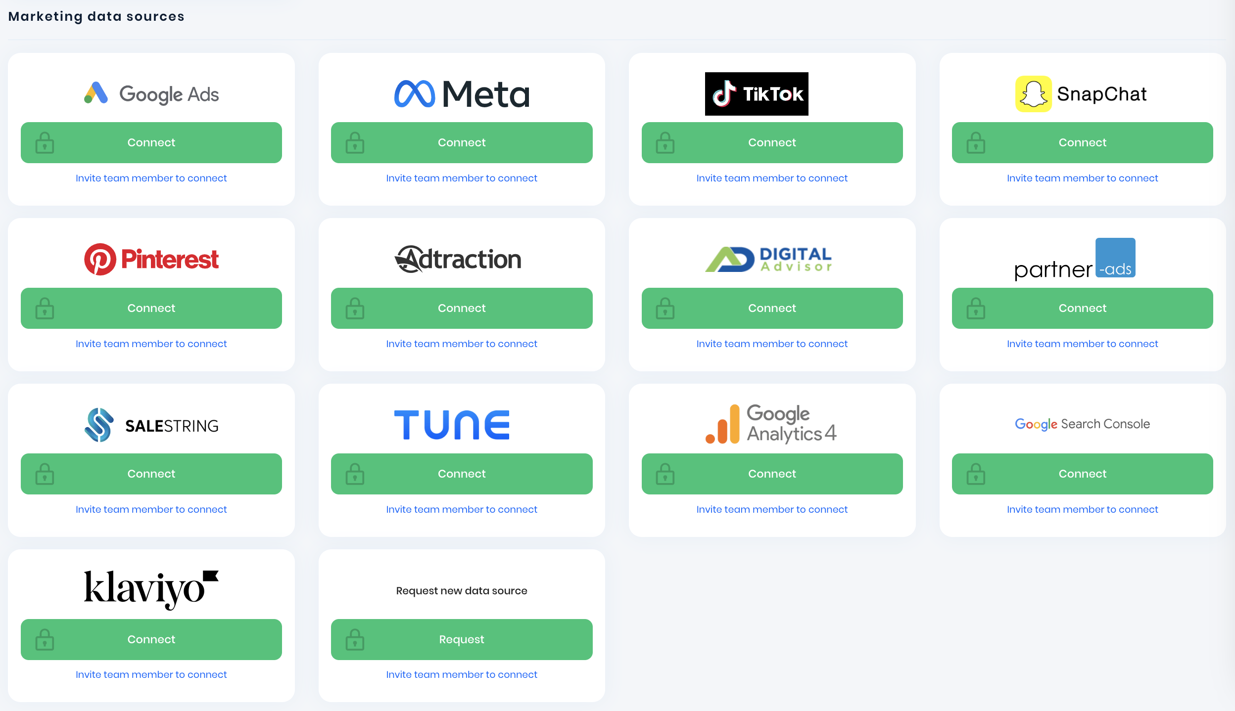 Select and easily connect your marketing channels here: