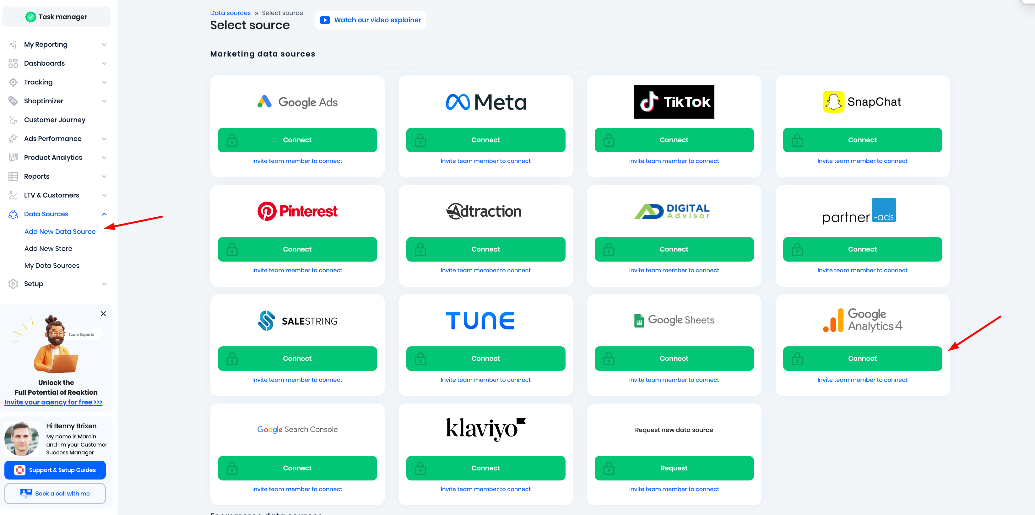 Connect GA4 data source in Reaktion: https://advertiser.reaktion.com/data-sources/select