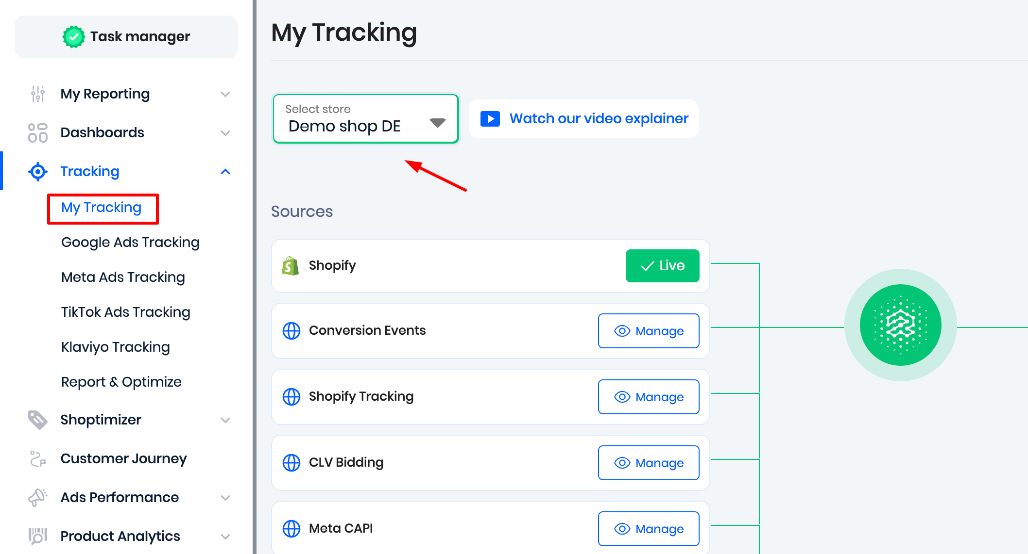 To complete this essential Reaktion setup step, please go to the My Tracking page and select a store from the dropdown menu: