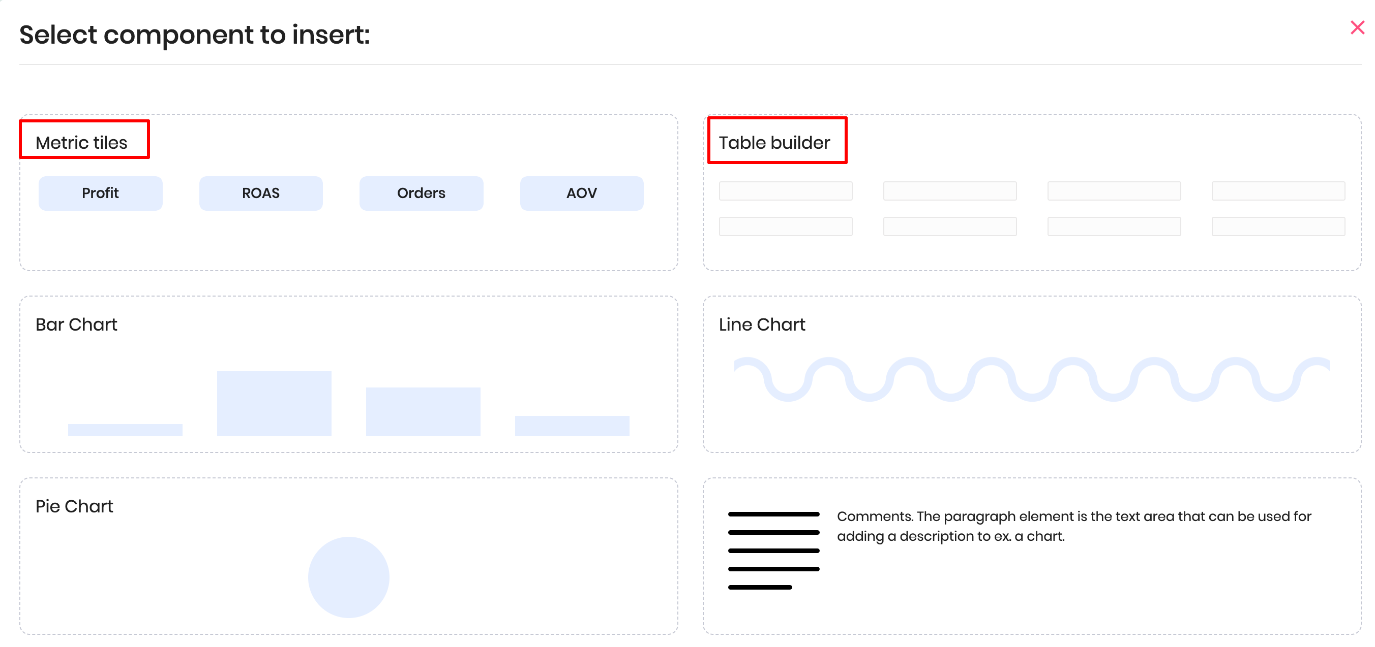 3. Create a report using either metric tiles or tables, since we currently only support showing these components in email reports:
