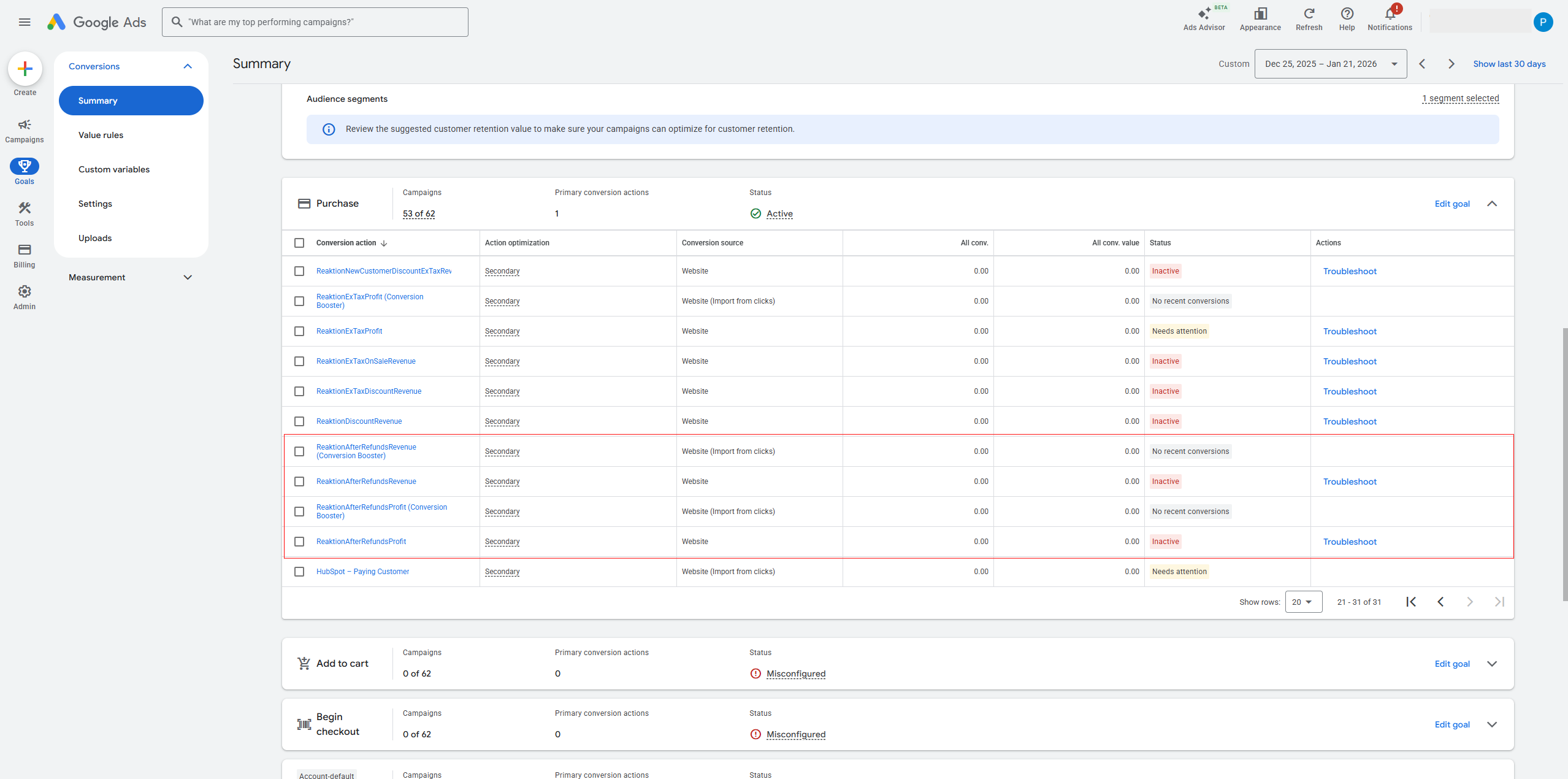 That's it! By setting these conversion actions as primary events, you are asking the Google Ads algorithm to optimize for revenue/profit after returns!