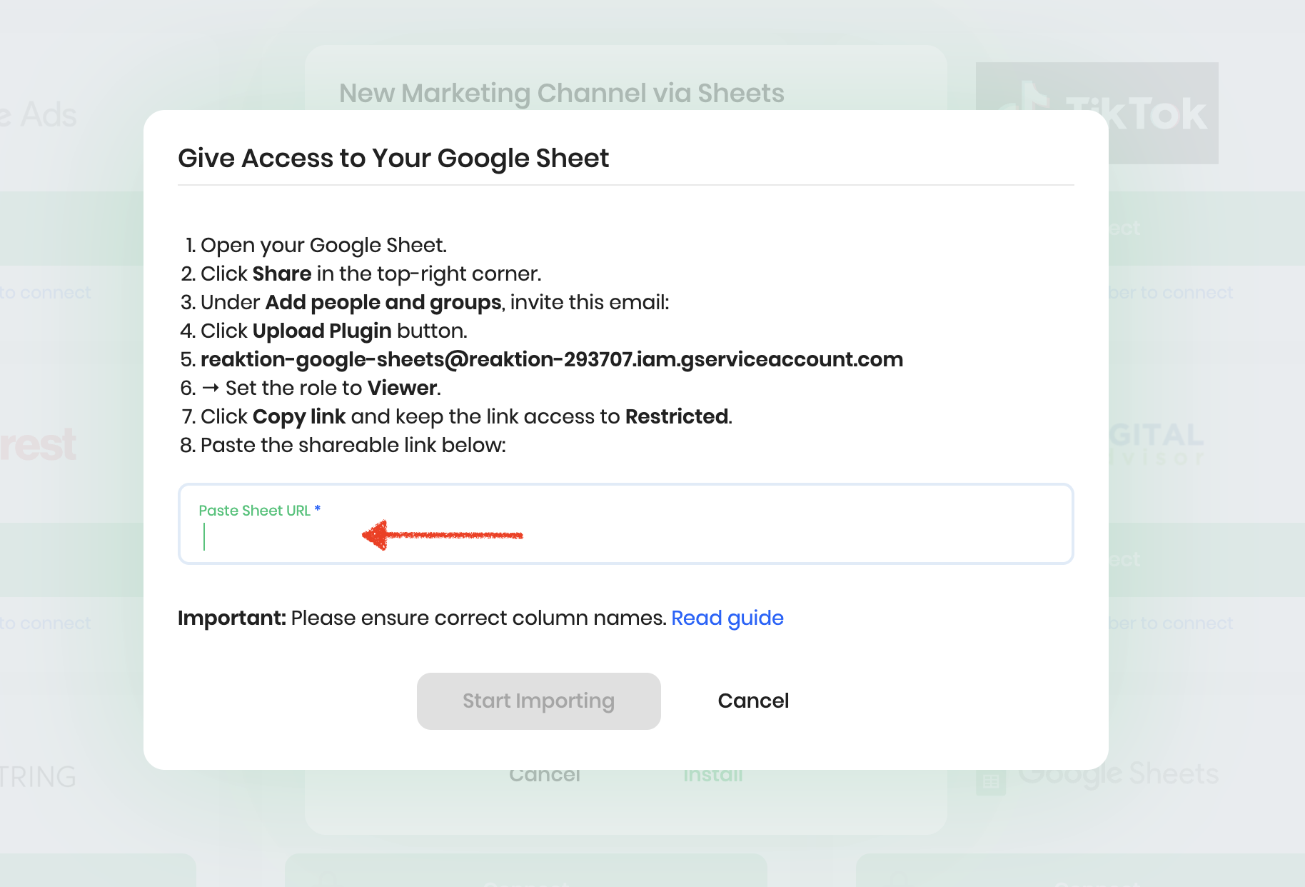 Move Any Marketing Platform Data into Reaktion via Google Sheets