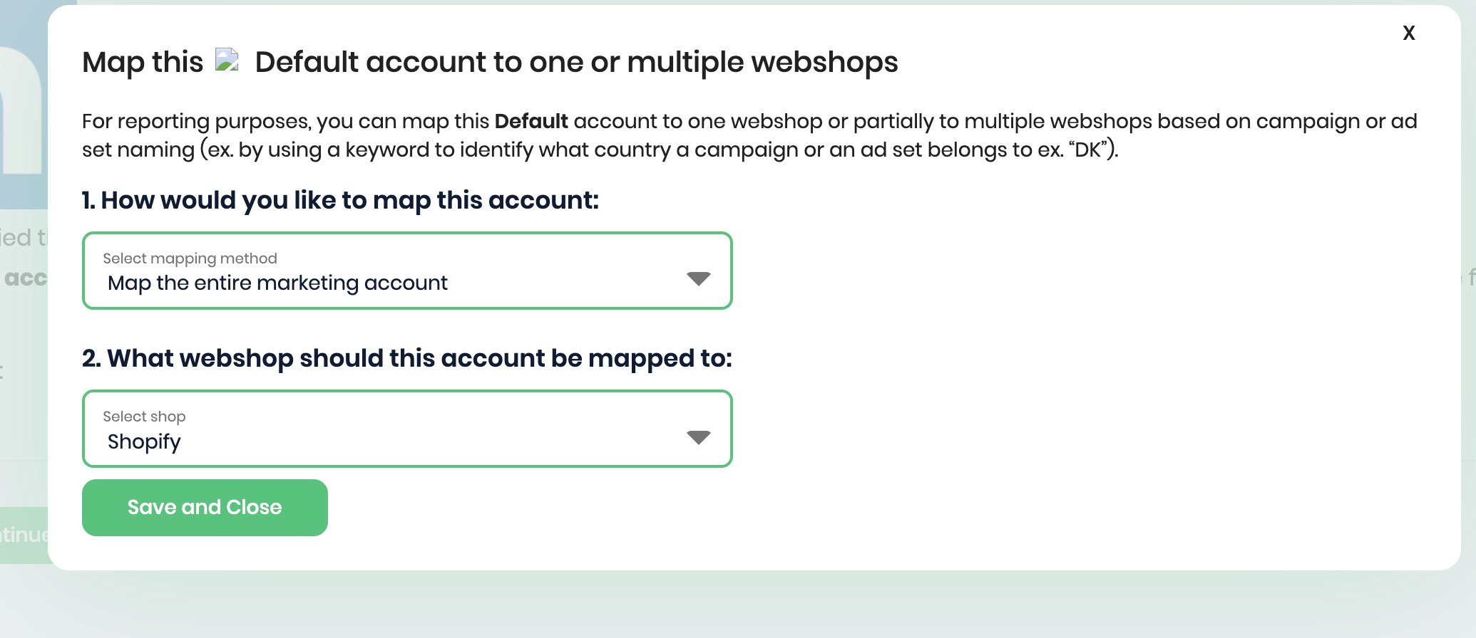 Last step, if you operate multiple stores is to map the Sheet marketing integration to a Store. This is for multi store reporting only and is not mandatory: