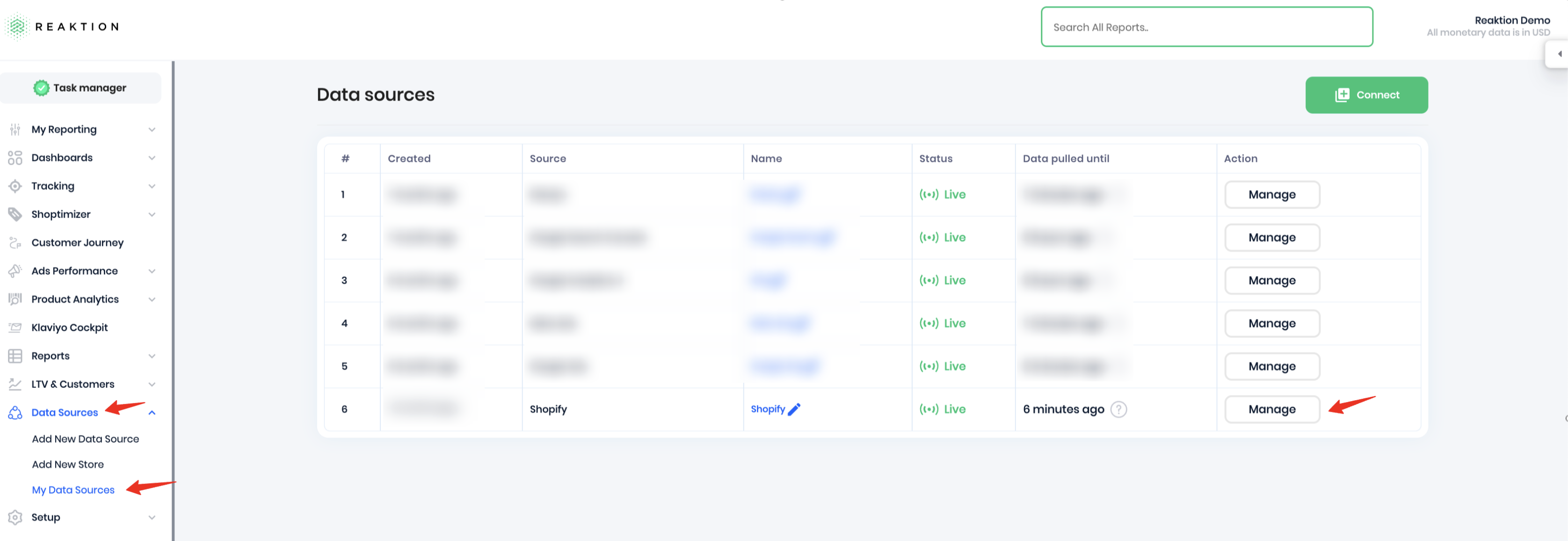 - Go to Data Sources → My Data Sources in your Reaktion account