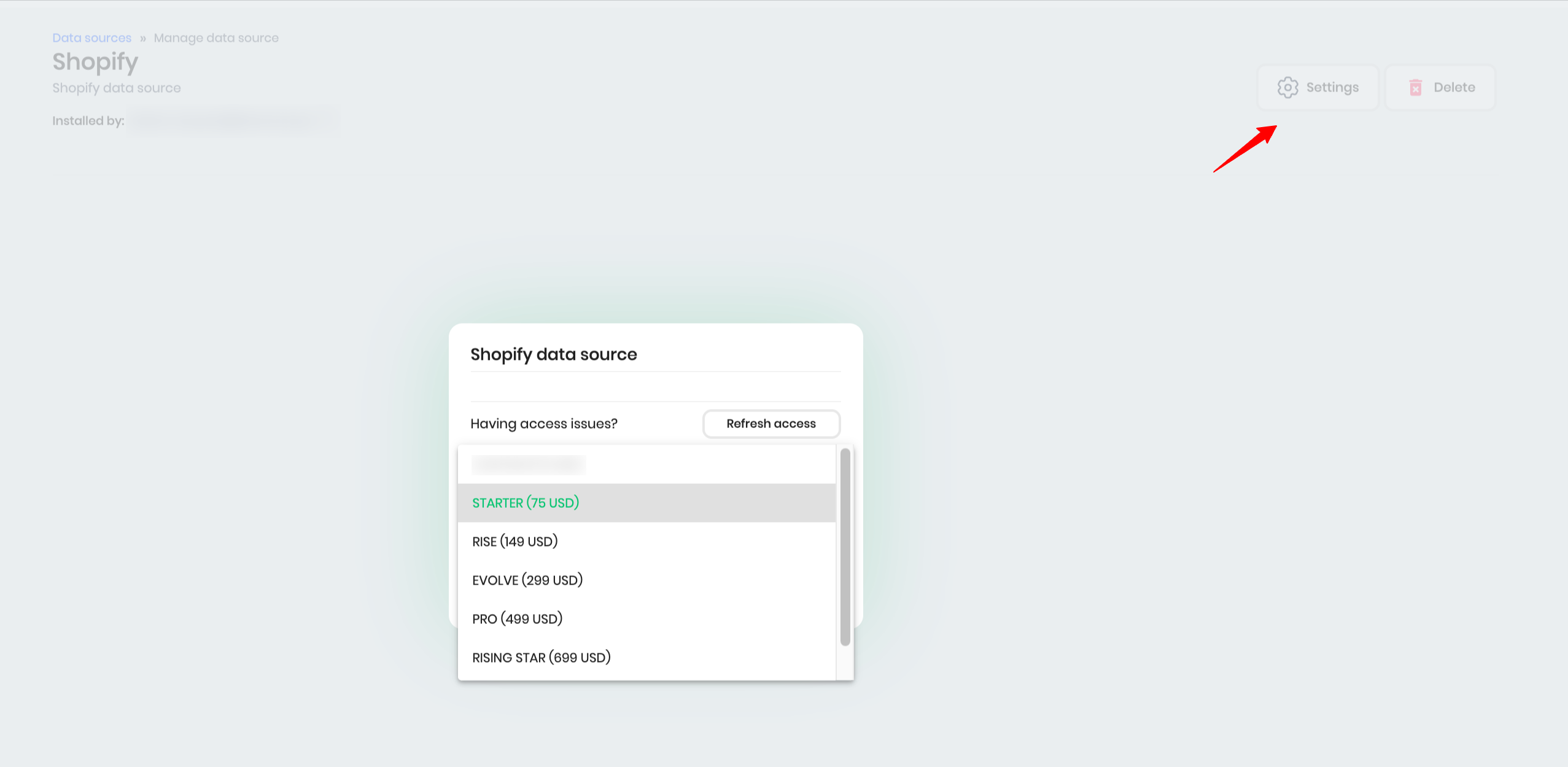 - Select Settings. A pop-up will appear, allowing you to upgrade your plan to the option that best fits your needs.